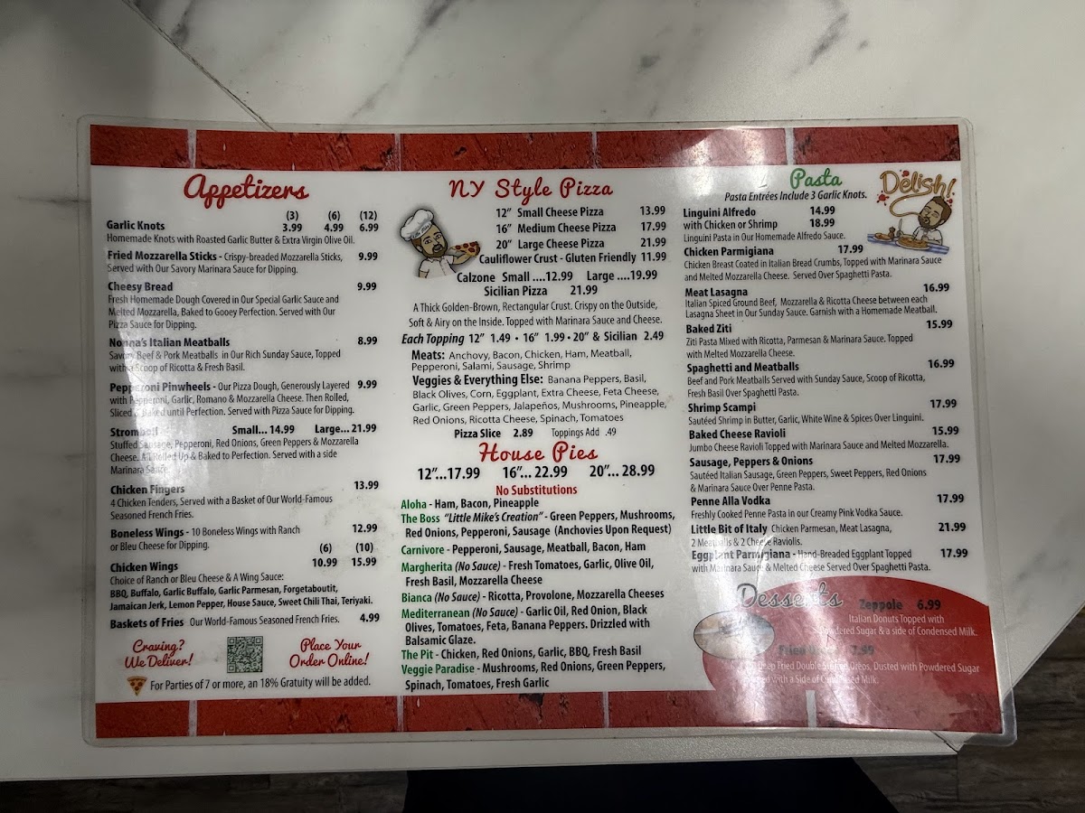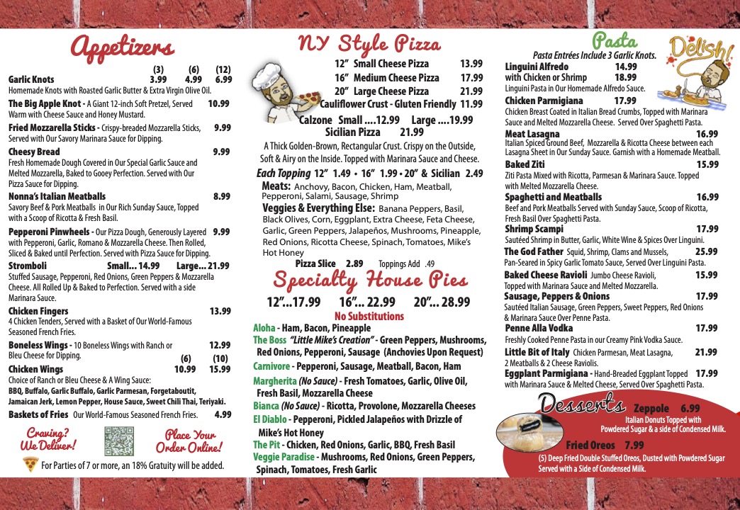 Our House Made Fresh Dough Covered with Special Garlic Sauce, Topped with Mounds of Mozzarella Cheese. Baked to a Cheesy, Gooey Goodness.