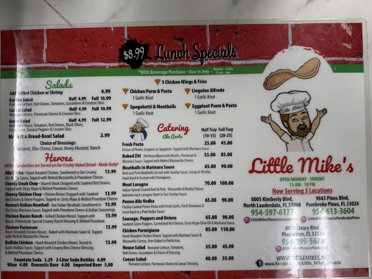 Chicken Parmesan, Meat Lasagna, Meatballs and 2 Cheese Raviolis