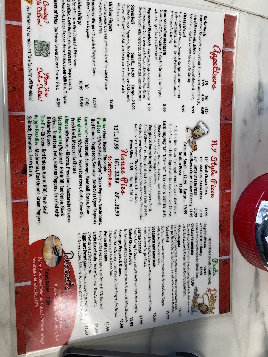 Hand Tossed New York Thin Crust Style With Green Peppers, Mushrooms, Red Onions, Pepperoni and Sausage